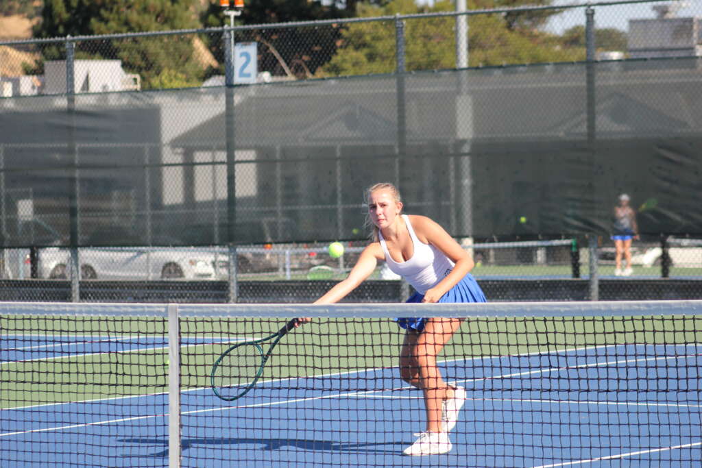 The Season got off to a good start Tuesday as the Dons won 5-4 at home against Bishop O’ Dowd, a team that defeated them last season. On the singles side, freshman Elisabetta Sokolova played Line 1 and narrowly lost 7-6, 6-4 in her high school tennis debut. Aamena Shipchandler faced a very tough opponent and lost 6-0, 6-1 at Line 2. At Line 3, Grace Colaco battled to win 10-6 in the third set tiebreaker after losing the first set 4-6 and winning the second set 6-4. Emily Roberts and Audrey Tseng cruised to victory at Line 4 and 5, winning 6-2, 6-4 and 6-2, 6-0 respectively. At Line 6, Jasmine Taylor fell 10-7 in a third set tiebreaker after losing the first set 1-6 and winning the second set 6-1. Elisabetta and Grace were named players of the match.
