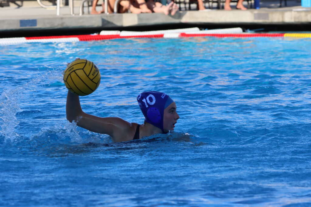 The Dons played the first game of the tournament on Friday and the last game of the tournament on Saturday afternoon at 5pm. The Acalanes parents showed up to cheer on their Dons as they took to the pool against the Granite Bay Grizzlies. Malin won the sprint, sent the ball to Ella who passed it into Finley for goal #1. Adelyn’s blocks started early on and contined through the quarter as Finley and Ella rocketed the ball to the back of the cage three more times each to end the quarter 7-0. Quarter two was a quick one with steals from sophomore Emiko Kuniyoshi and Sara Williams and some nice teamwork from senior Sadie Hendrickson who passed to Emiko for a stellar goal from set. Anika Rehn won the sprint to start Q3 and Lucy Kerr sent the ball to Olivia Whipple who sent the ball in the twine. Acalanes defense stayed strong and the next possession showed our freshman strength with a great pass from Elinor Chen to Lucy who sunk the ball in cage. The final quarter got cooking with Malin Stone getting a great pass from Anika to find the back of the net. Elinor was back in action and earned a penalty shot, which she took with authority! Emiko was back in action with a stealthy steal and another goal, with a great assist from senior Siena La Rotonda. Freshman goalies Gen Balfour did a great job in the goal and the Dons took the 10-1 win to end the tournament.