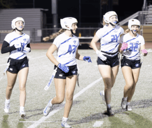 The Dons started on offense and what a start it was. Junior all-everything quarterback Ines Coyne’s first pass of the night was a dart to 1st team all league receiver Maya Shoenhair for 10. Coyne then pitched to sophomore standout Isabelle Agnost who quickly gained 15 more. Another run from Agnost got the ball to the Broncos 12 yard line. On 3rd and goal from the 12, Agnost kicked with her spurs and left Bronco defenders in the dust, racing into the endzone for the touchdown. The point after was no good and the Dons were out to a quick 6-0 lead. On Northgate’s first possession the Dons’ dominant defense immediately asserted itself. On first down, pash-rusher extraordinaire Julia Munter stopped the Broncos for no gain. On second down, linebacker Santana Tamayo, stopped the Broncos after a 1 yard gain and on 3rd down, linebacker Stella Beuchotte stopped the play for no gain to force a quick 3 and out. On the ensuing drive, the Dons offense would march down the field taking up the remainder of the first quarter and continuing into the second. Coyne continued her hot start, firing a laser to receiver Mira Clark. A Bronco defender got there too early and was flagged for the pass interference giving the Dons 10 free yards and another first down. On the next play it was Coyne to Clark again, this time for 8. The Broncos defense stood strong for the next several plays but on 4th and 5, Coyne pitched to Agnost who galloped for 9 and a first down. The Dons two-stepped their way down to the 16 yard line. The Northgate defense had figured out by this point that this Agnost kid could run. Well she can throw too. On 3rd and goal, with the entire Northgate defense crashing down on her like a Texas tornado, Agnost launched a 20 yard pass into the endzone to wide open Tamayo for the touchdown, a great call by Sheriff Mike Ivankovich and Deputy Joe Escobar. The point after was no good and the lead stood at 12-0.