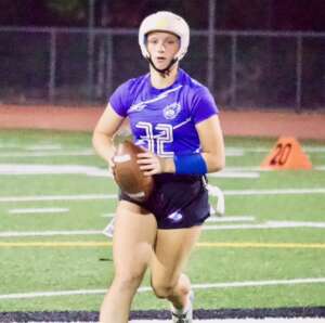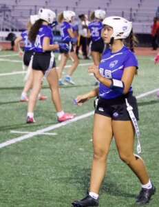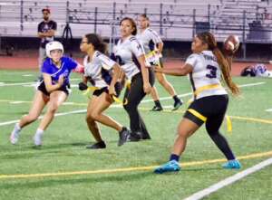 The game opened with cornerback June Natal intercepting a pass from the YV quarterback on the first play and returning it 14 yards for the touchdown, the Dons’ first pick 6 of the year. One of the Bay Area’s quarterbacks to watch per the SF Chronicle, Ines Coyne, ran in the point after and the Dons were off and running 7-0. The Dons stellar defense forced YV to punt on their next possession. Coyne immediately scampered for 25 yards to get the Dons into the redzone. Coyne then handed off to the electric running back Isabelle Agnost who raced around the right edge for a 10 yard touchdown. A crisp pass from Coyne to center Lesley Trowbridge on the point after made the score 14-0. YV put together a few big plays on offense on their next drive. The drive would ultimately end in a failed 4th down attempt near midfield. On the ensuing drive, Agnost ripped off 15 before Coyne zigg-zagged for 20 and her first touchdown of the game. Coyne ran in the PAT and the Dons lead stood at 21-0. On YV’s next possession, Prime-Time Natal had her second interception of the game giving the Don possession at the YV 30. Running back Noelle Dobies blasted ahead for 10 yards and got an extra 10 when a YV defender jumped in front of her and received the worst of the encounter. On 2nd and goal from the 9, Coyne fired a pass to receiver Santana Tamayo for the touchdown. Coyne ran in the PAT and the Dons led 28-0 to end the first quarter.