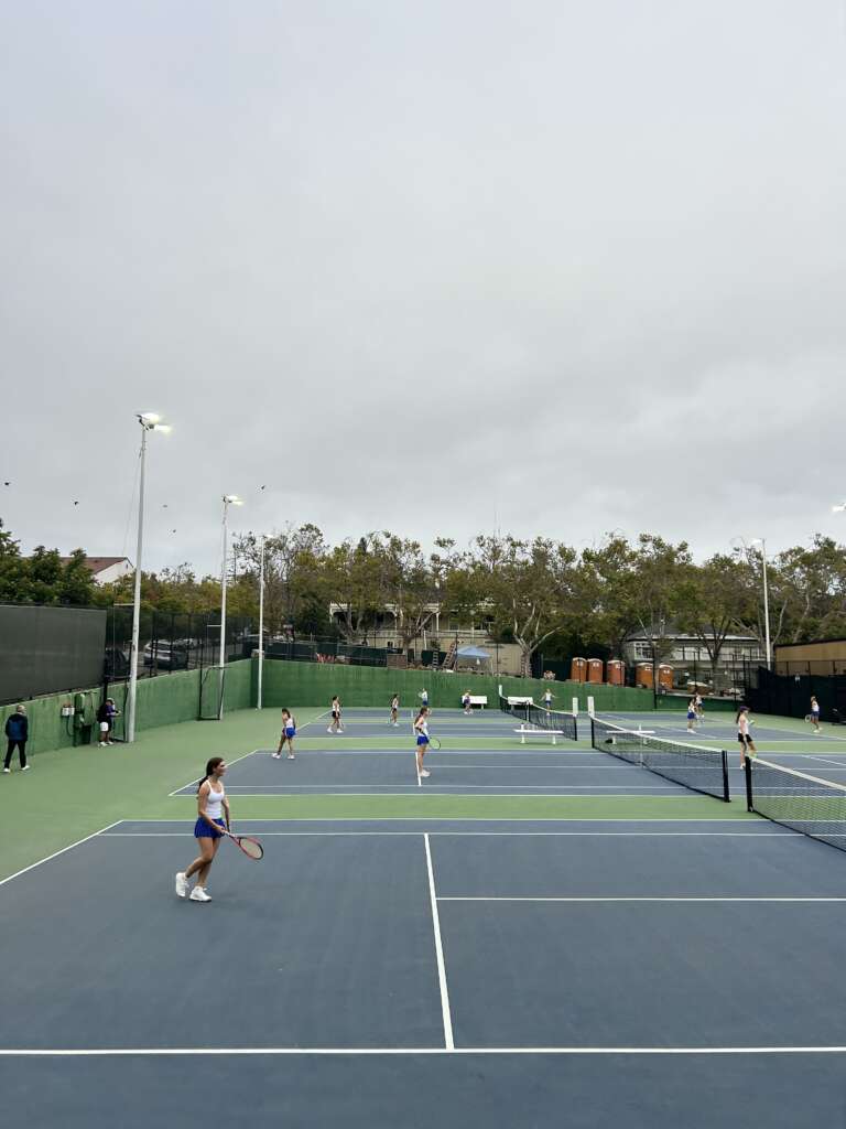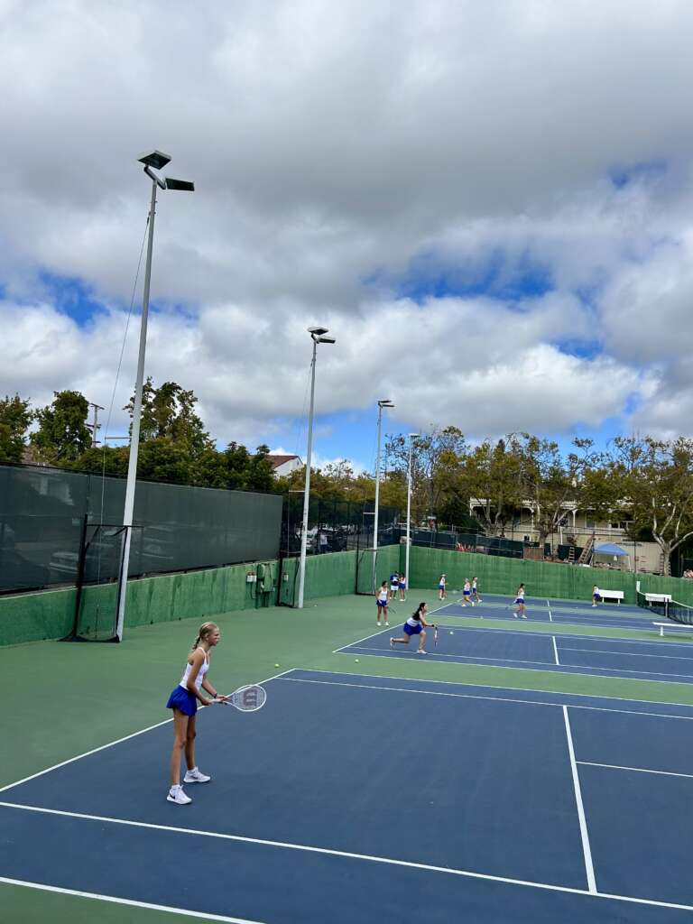 The JV Girls Tennis team completed their final pre-season match tonight with a strong win against Piedmont. It was a beautiful afternoon to head through the tunnel, with bright and cloudy skies and almost chilly temps. The girls had plenty of time for homework and to check out the cozy Mulberry Market up the street between sets, as their were only four courts and so downtime was plentiful.