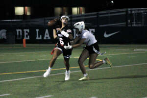With the silhouette of Mount Diablo backlit by a moon filled sky, the Dons took the field to face Carondelet in flag football on Tuesday Night.  The game was played at De La Salle whose field has been home to national champions and launched the careers of several NFL players.  The Dons were hoping to improve their record to 2-0.  The Cougars had a large, disciplined squad and looked sharp in their all black uniforms, much to the delight of their raucous home crowd.