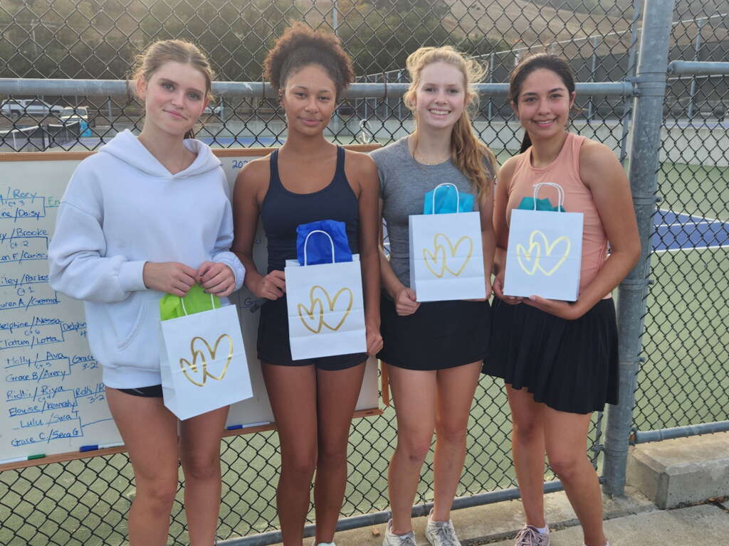 On Wednesday, in lieu of a regular practice, the team played in the annual Acalanes Varsity-Junior Varsity tournament, where the two teams mixed for a fun afternoon of match play. Then on Thursday, they traveled to College Park, where the team swept all lines in both singles and doubles. Might the parent-supplied bagels, fruit, and fruit snacks this season have something to do with the wins? This writer can’t say for sure, but it surely hasn’t hurt!