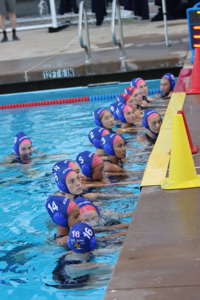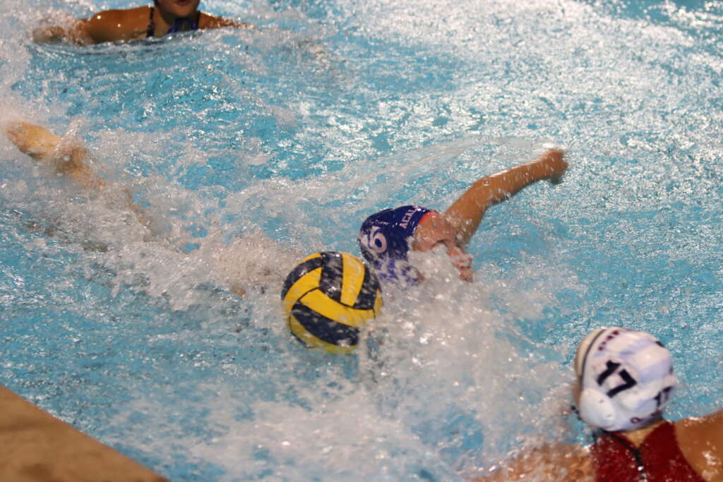 Quarter three started with another sprint win by Anika Rehn. Senior Ella Del Rosario snagged the ball and headed up the pool for a 1v1 against the goalie. Ella pump-faked and sent one to the back of the cage. Campo came back, but Adelyn was on FIRE and locked every single attempt. On the next play, senior Sara Williams sent the ball over to Ella who assessed the situation and sent an lob right over the goalie for goal #2. Adelyn continued to block every shot sent her way and on the next play, Ella earned a 5-meter penalty and scored goal #3. Campo took possession, but not for long because Finley Graff snagged the ball, sent it up to Sara Williams who passed it into Ella who got right to work with goal #4 to end the quarter with Acalanes leading 7-2