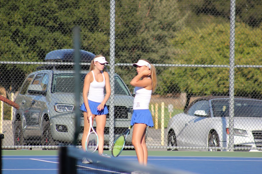 The Varsity Girls Tennis team hit the road on Tuesday afternoon, taking on 10-4 Las Lomas High School. The girls played some very long, touch matches with 4 tiebreakers and pulled out the great 8-1 victory as night fell in Walnut Creek.