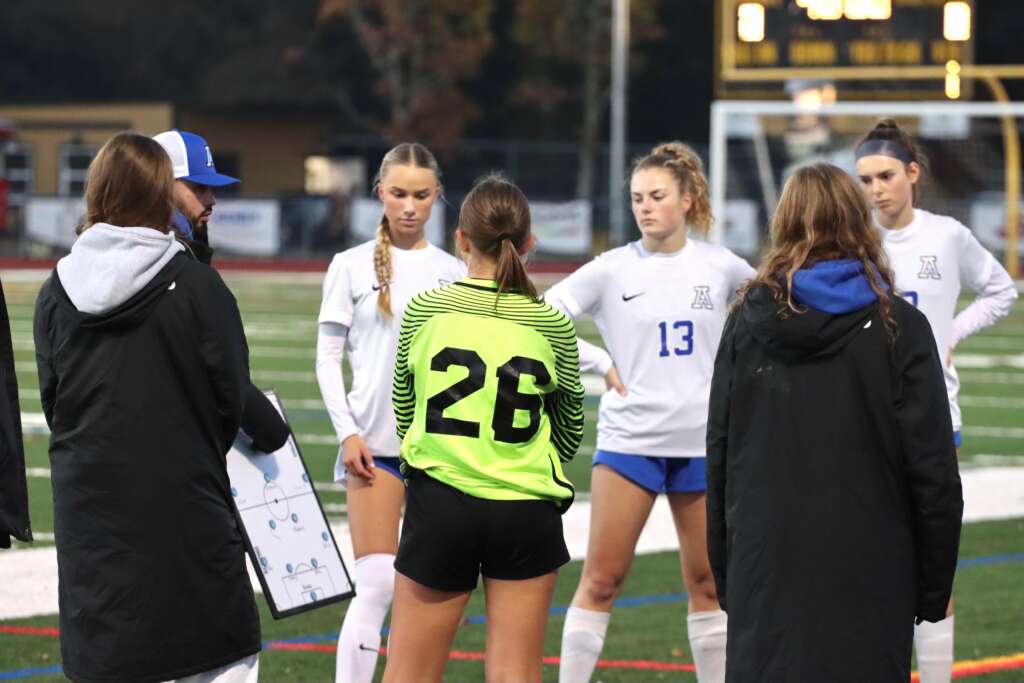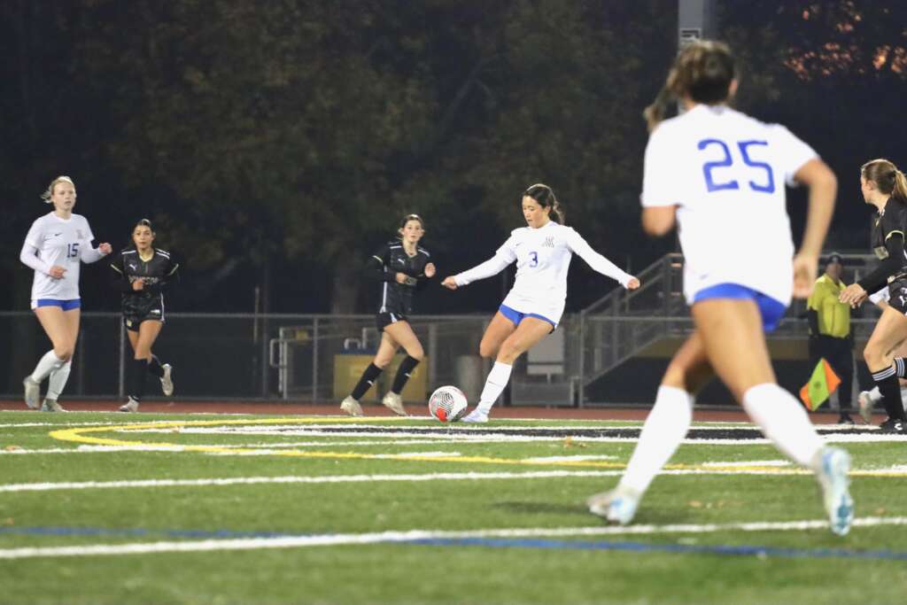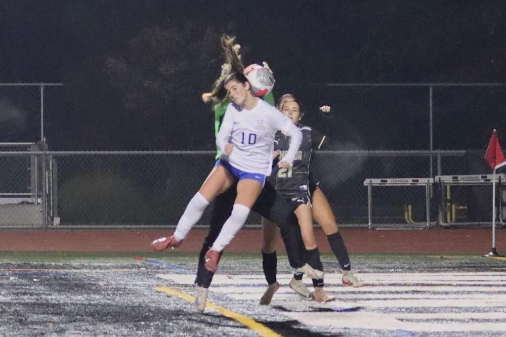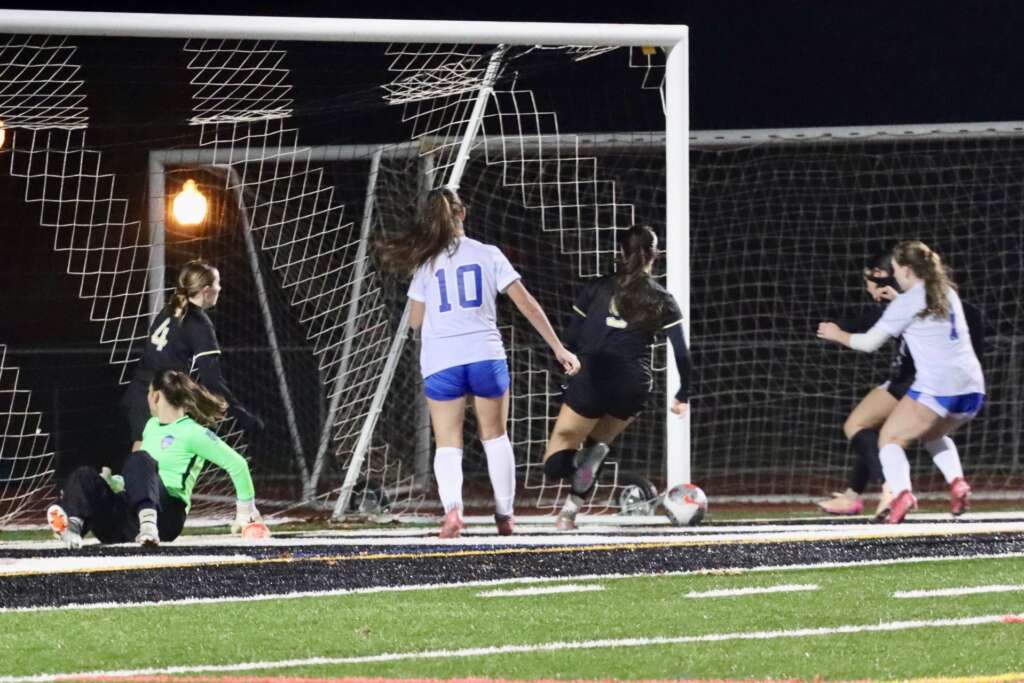 The defensive line of Tatum Keely, Ella Culbertson, Avery DeMent, and Tori Hiatt were tested early and often. Goalie Brooke Lewis, on loan from JV, covered the goal extremely well with a number of very nice saves throughout the game.