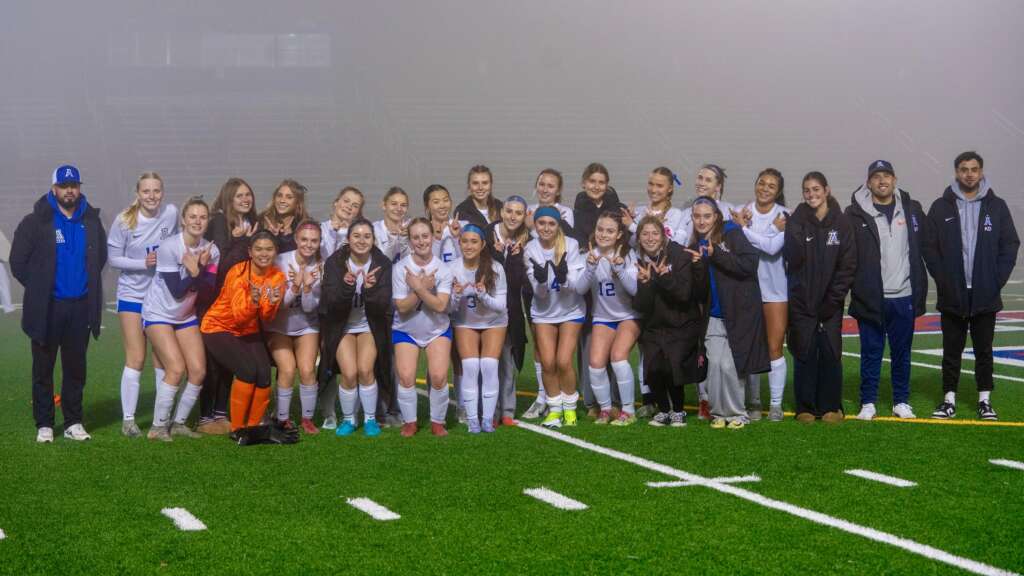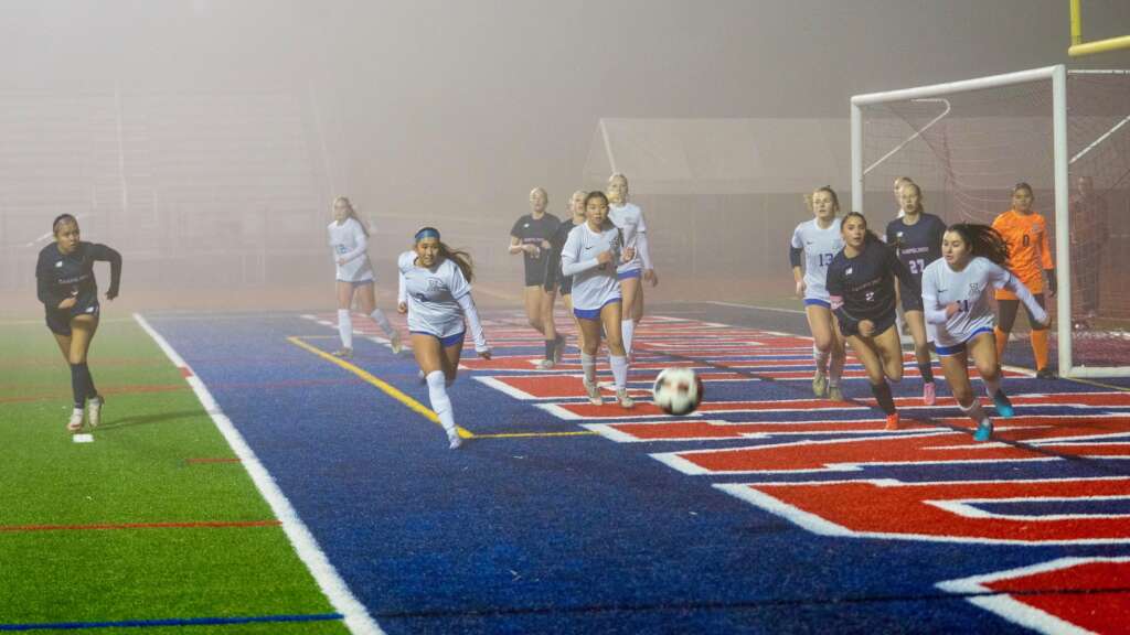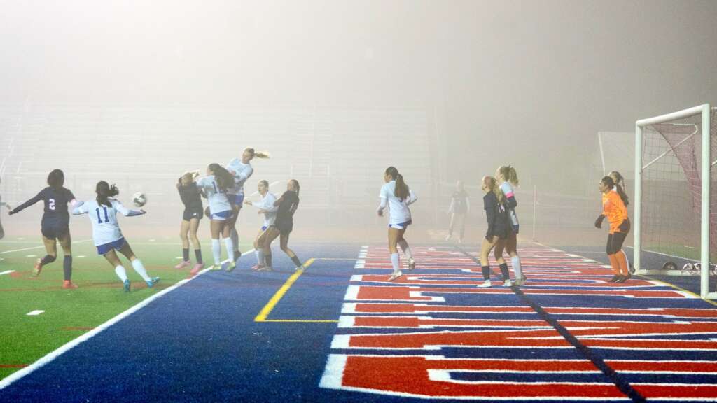 “Oh, the weather outside is frightful…” but so are our lady Dons! On Wednesday night the Varsity Girls Soccer team traveled into Cougar territory to take on Campolindo. It was a foggy night where parents in the stands couldn’t even see our team on the far sideline, but could clearly see the Dons in white dominating the game.