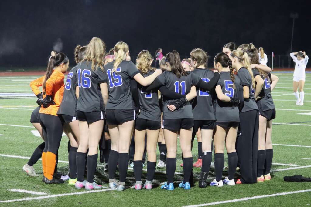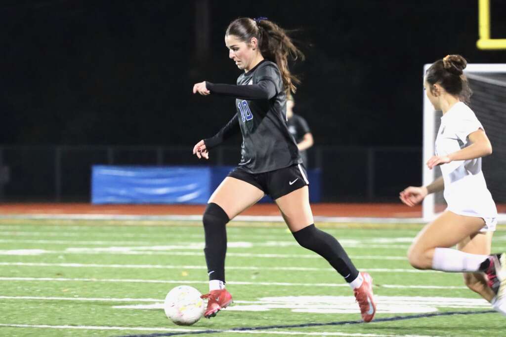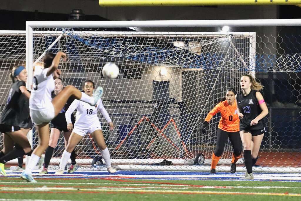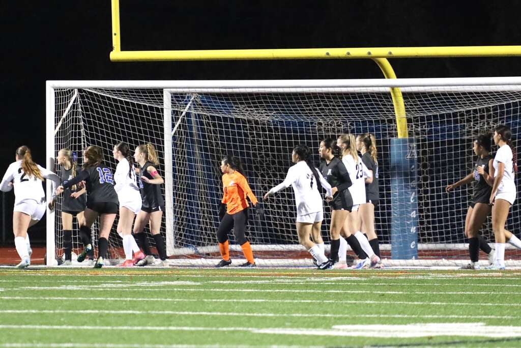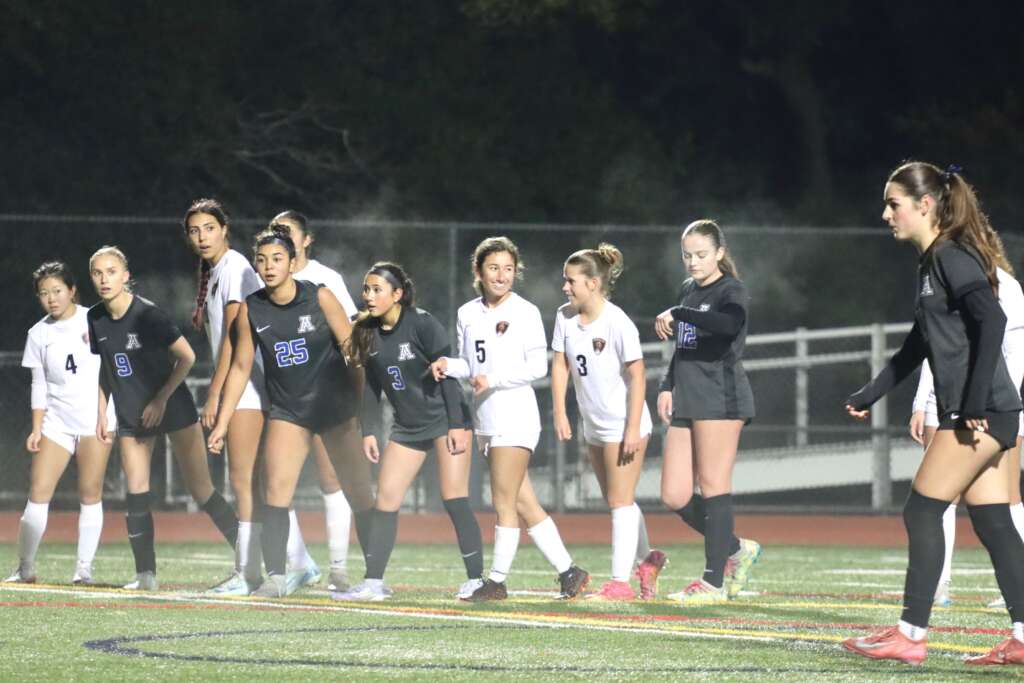The night began with a ritual we hadn’t seen in over three weeks – Captains Tori Hiatt and Tatum Keely meeting at midfield with the referees and opposing captains. The Lady Dons looked sharp in their new black uniforms, Acalanes blue numbers shining off their jerseys. The team was hyped and ready to battle, knowing California High has a quick and skilled squad.
