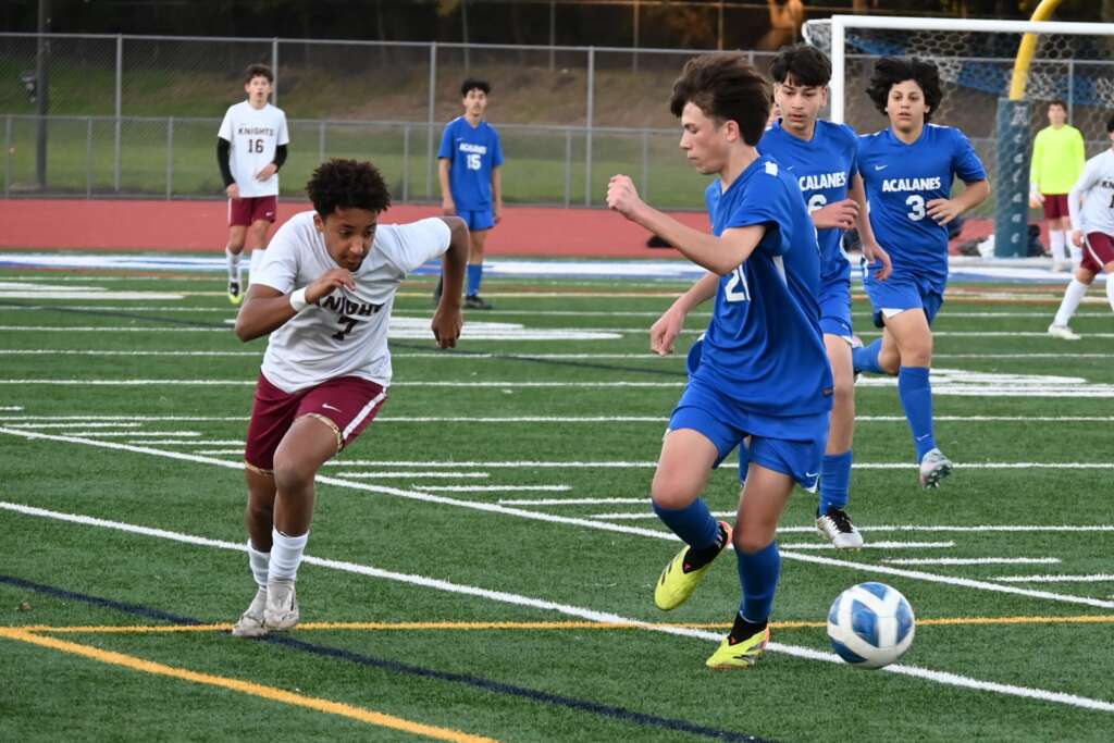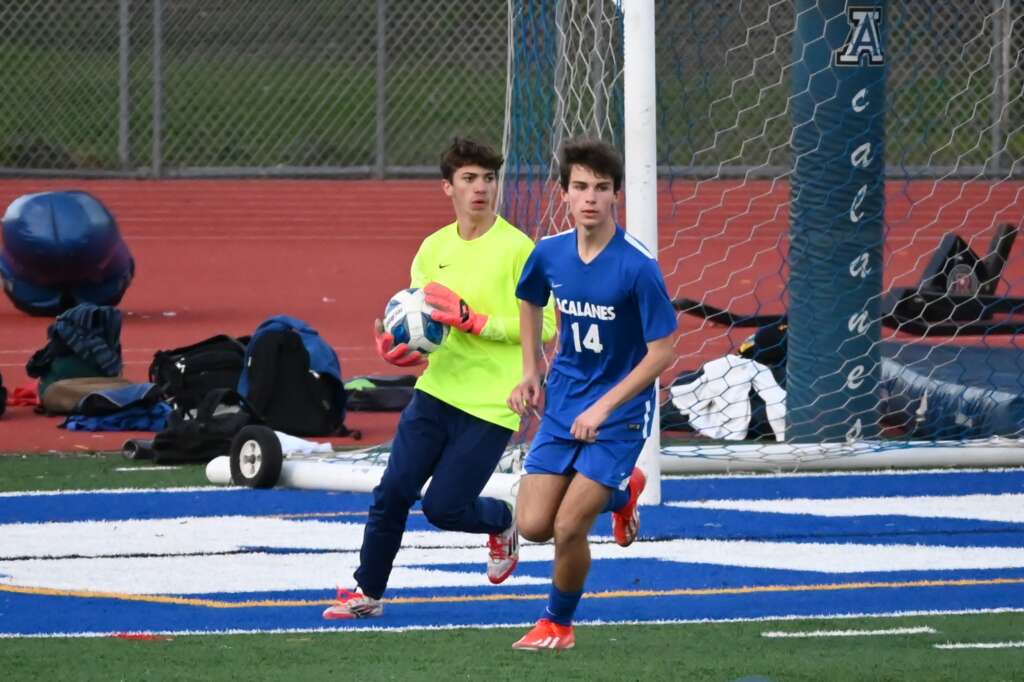 Acalanes doubled the advantage shortly after, capitalizing on sustained pressure in the box. Foster used his speed to control the ball deep in the right corner of the box and sent a cross to a streaking Sam Chamberlain who capitalized on the effort to put the Dons up 2-0.