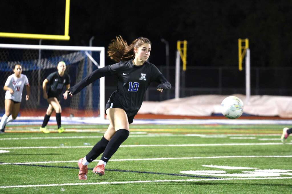 Clayton Valley started strong, spending the first five minutes on the offensive. The defensive line, including Claire Hawkins and the captains, were tested right away as they attempted to get the ball back up to the Aca midfield of Tierney, Evelyn Lee, and Grace Colaco. The attack of Michela Barbano, Stella Beuchotte, and Grace Eppinger came back to help, but had to remain patient before the Dons could gain some rhythm on offense. The fresh legs of subs Lily Polkinhorn and Averly Ammerman seemed to provide that rhythm as the Dons managed a couple of nice runs towards goal.