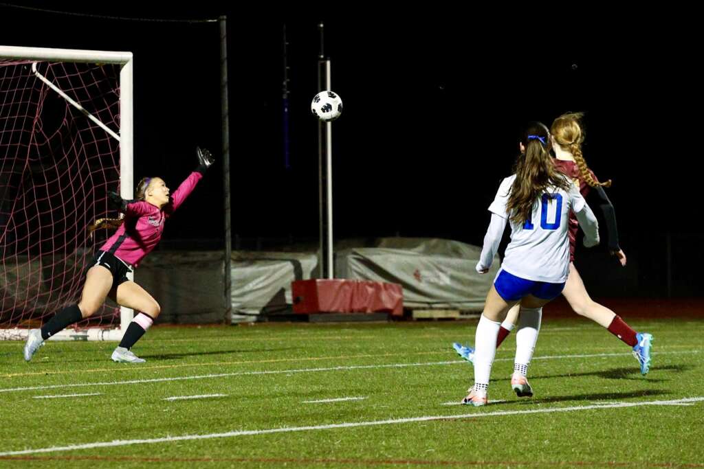 On Tuesday 2/10 the Dons faced off against the College Park Falcons in a light rain. Right away it looked like the Dons would be able to pressure the Falcons goal and earn some shots. Caroline Tumilty, Tori Hiatt, Casey Lerch, Grace Eppinger, Averly Ammerman, and Reese Tierney fired off shots in rapid succession as the Dons dominated possession through accurate passing and ball movement. College Park would get a great opportunity on an open shot that, from the stands, looked like a for-sure goal, but goalie Maria Statnikova made a beautiful diving save.