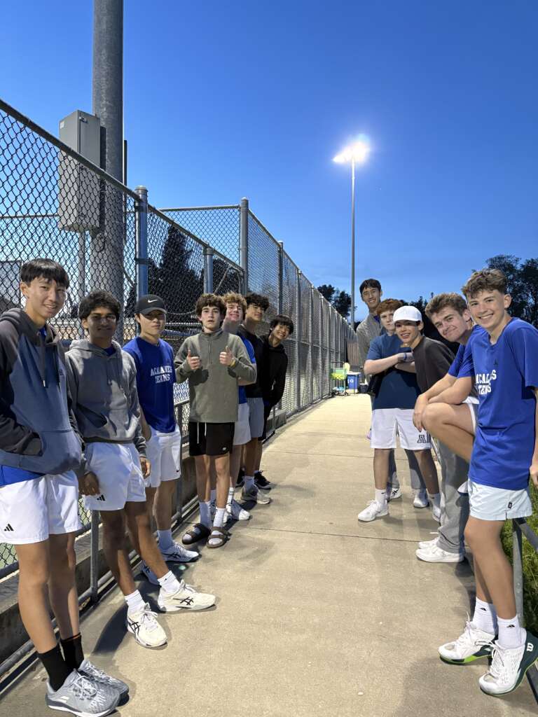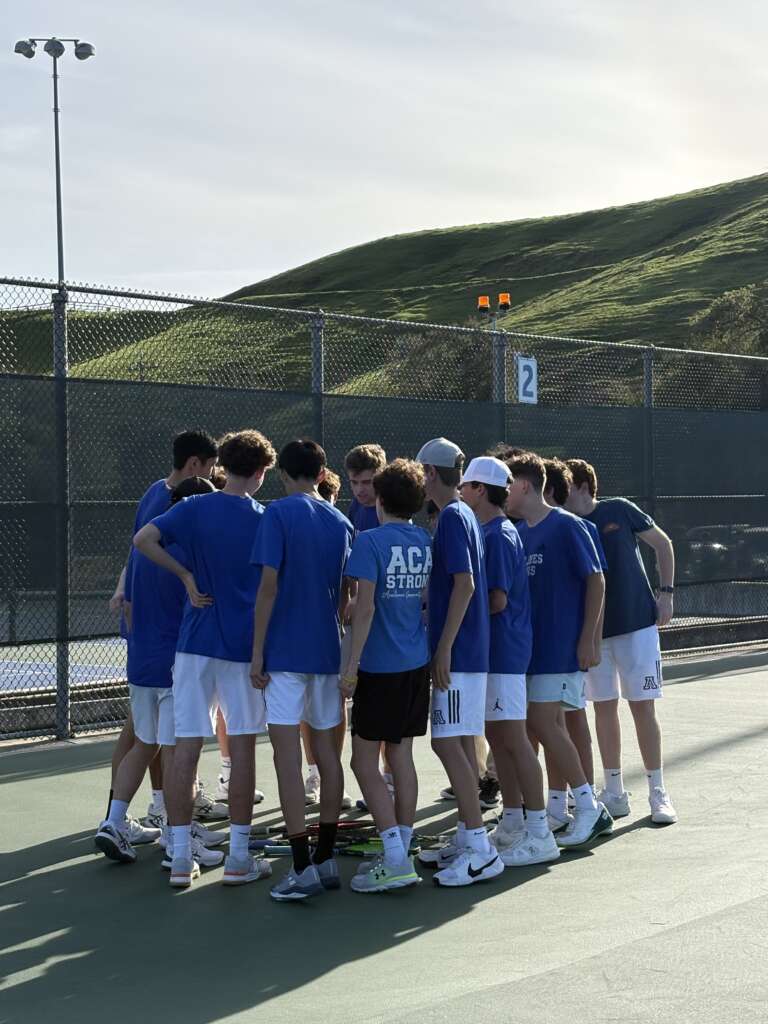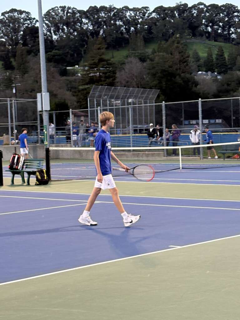 The interest in being on the boys’ tennis team each year never ceases to amaze me. Forty-nine boys tried out and when the coaches were through assessing the talent, varsity selected 17 and JV kept 20 student-athletes ready to represent Acalanes. Last year, six of our seniors graduated leaving a gaping hole in the varsity lineup. This year, we have seven seniors. So, while we focus on having a good year, we also have a need to develop talent for the years to come. The answer to that dilemma presented itself during tryouts. Five freshmen, with solid tennis credentials, wandered into tryouts and have plugged the gaps in our lineup: Sammy Taylor, Cameron Fisher, Rhett Brewer, James Ammerman and Alex King. The future looks bright!