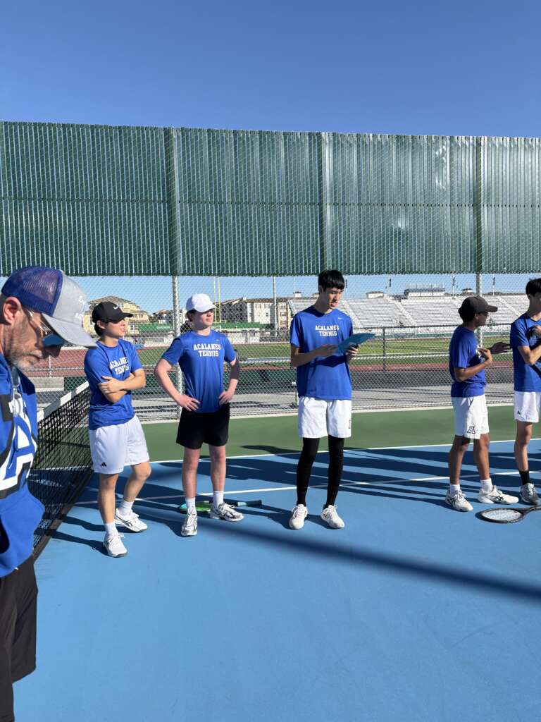 Today, the varsity boys’ tennis team had its first away match. It was a practice match against Emerald High in Dublin. Emerald is a brand new school and the campus is absolutely gorgeous. The facility sports eight new lit courts which allowed us to get more matches going right out of the gate. Coach Danielle and her squad were very hospitable hosts. Hopefully, we will play them again in the future.