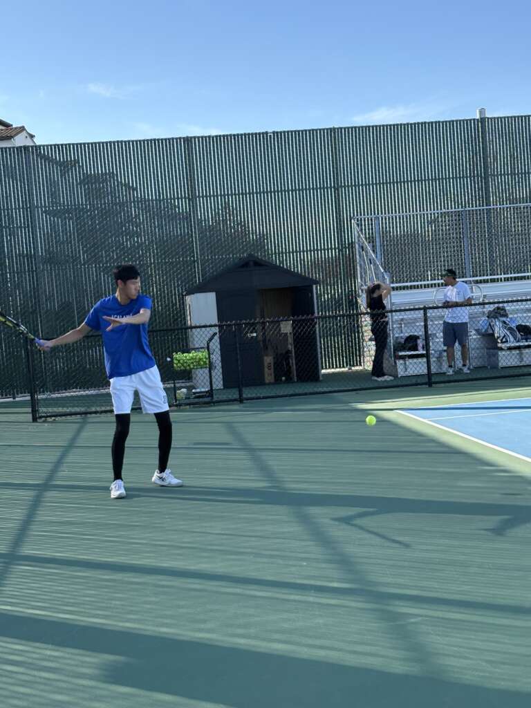 All six singles and the two higher-seeded doubles matches took to the courts first. #1 Sze Ting Chen finished first dominating freshman Aarav Shah 6-0, 6-0. Next off was the #2 doubles duo Brewer/Ammerman who gave up only three games in a lopsided win. The doubles chemistry these two are showing after only two matches together has been outstanding. #4 Hoeberechts finished next quickly dispatching Kothari 6-2, 6-2. Bora looked happy to see some pace this week – inside joke. At this point, the Dons were up 3-0.