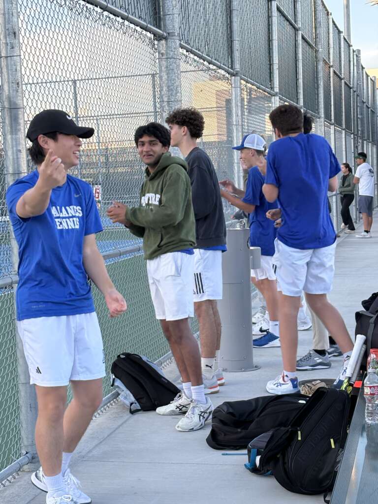 #3 Sze You Chen then completed a straight set win over Sivakumar 7-5, 6-2. Yoyo played a great match and stayed comfortably ahead throughout. He sealed the overall victory for Acalanes with that critical fifth win. #5 Taylor found himself in another long battle – I’m starting to see a pattern here. Sammy’s match was the only one with split sets. Kudos to Sammy for picking his game up after a slow start. He won the second set 6-4 but just couldn’t get ahead of Ram in the deciding super tiebreaker. There were a lot of long points, but Ram took it 10-6. The last match going was #3 doubles where the team of Roberts/Gorham gave up only three games in a solid performance over Reddyganta/Banda.